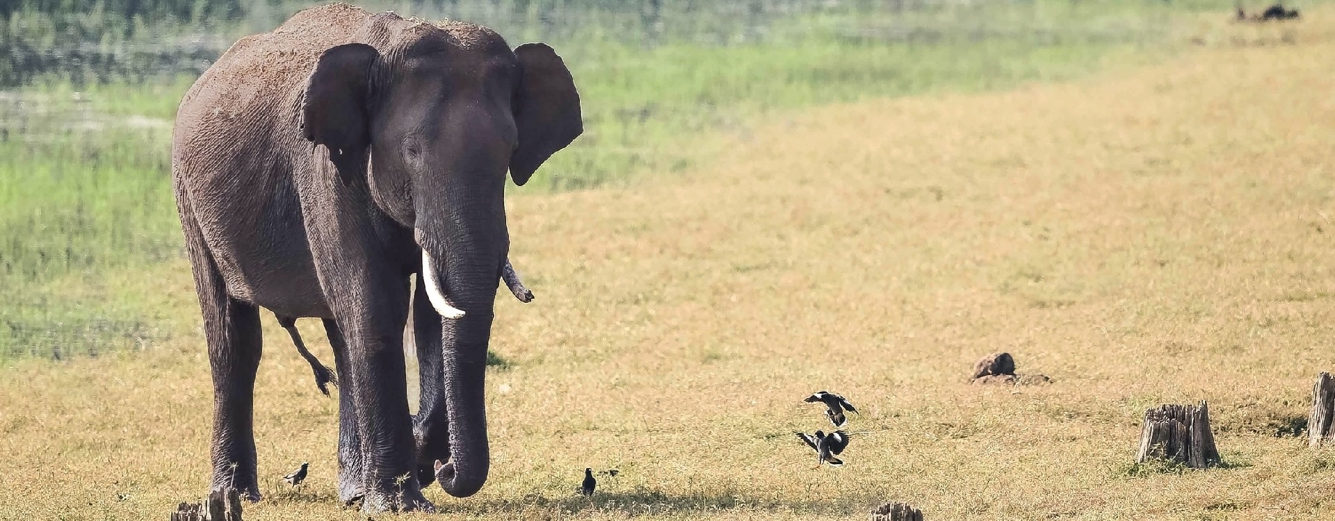 • The park’s diverse terrain—ranging from tall elephant grass and marshy wetlands to tropical broadleaf forests—supports a thriving population of wild Asiatic water buffalo, swamp deer, elephants, and a healthy number of tigers.